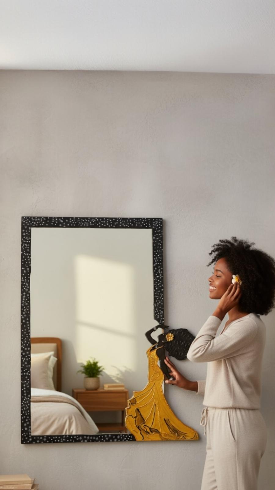 Un espejo decorativo que trasciende lo funcional para transformarse en arte exclusivo de pared, ideal para quienes buscan estilo, originalidad y un detalle sofisticado en sus espacios.